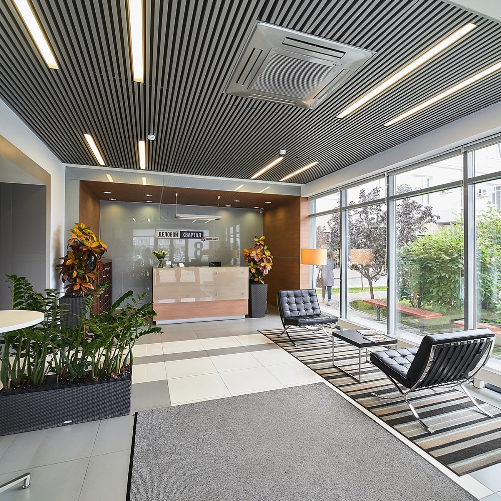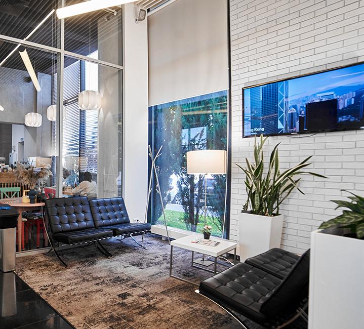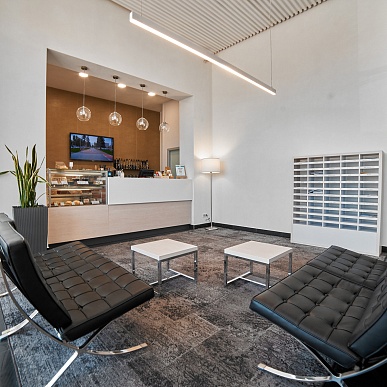 Вы можете отлично провести свой перерыв в уютных зонах ресепшен в каждом строении. Отвлекитесь от рабочих хлопот, сидя в удобных и стильных диванах и листая интересный журнал.